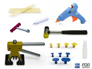 Итак, в стандартный набор инструментов по удалению вмятин на автомобиле без покраски, как правило, входят: