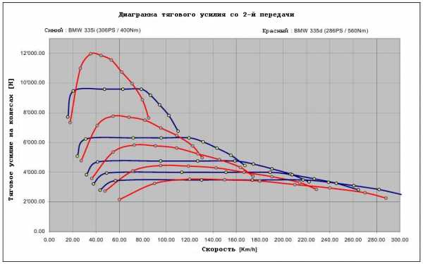 Диаграмма тягового усилия BMW E90 335i и E90 335d