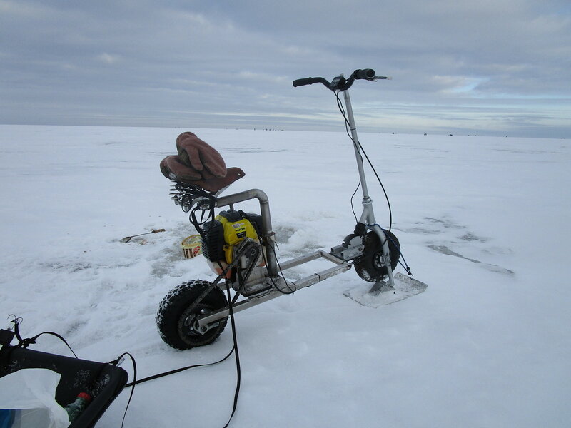 Но, тут есть один нюанс. О мобильности снегохода в таком варианте можно забыть. Он служит лишь для того, чтобы доставить коллектив рыбаков со снастями от места стоянки машин до 1 или 2 точек лова. Все, далее «снежик» стоит до конца рыбалки, ожидая, когда всю «рыболовную банду» нужно будет отвезти обратно к машинам.