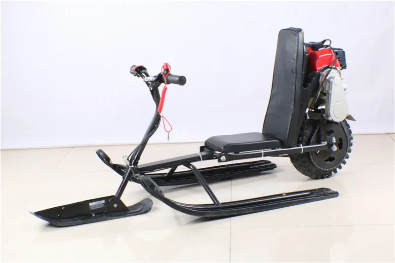 - Двигатель – для изготовления мотосаней своими руками идеально подойдет небольшой двигатель от скутера или мопеда. Важно, чтобы он хорошо переносил холодную погоду и имел возможность завода с рычага или троса. А также была возможность использования масляно-топливной смеси как горючего.