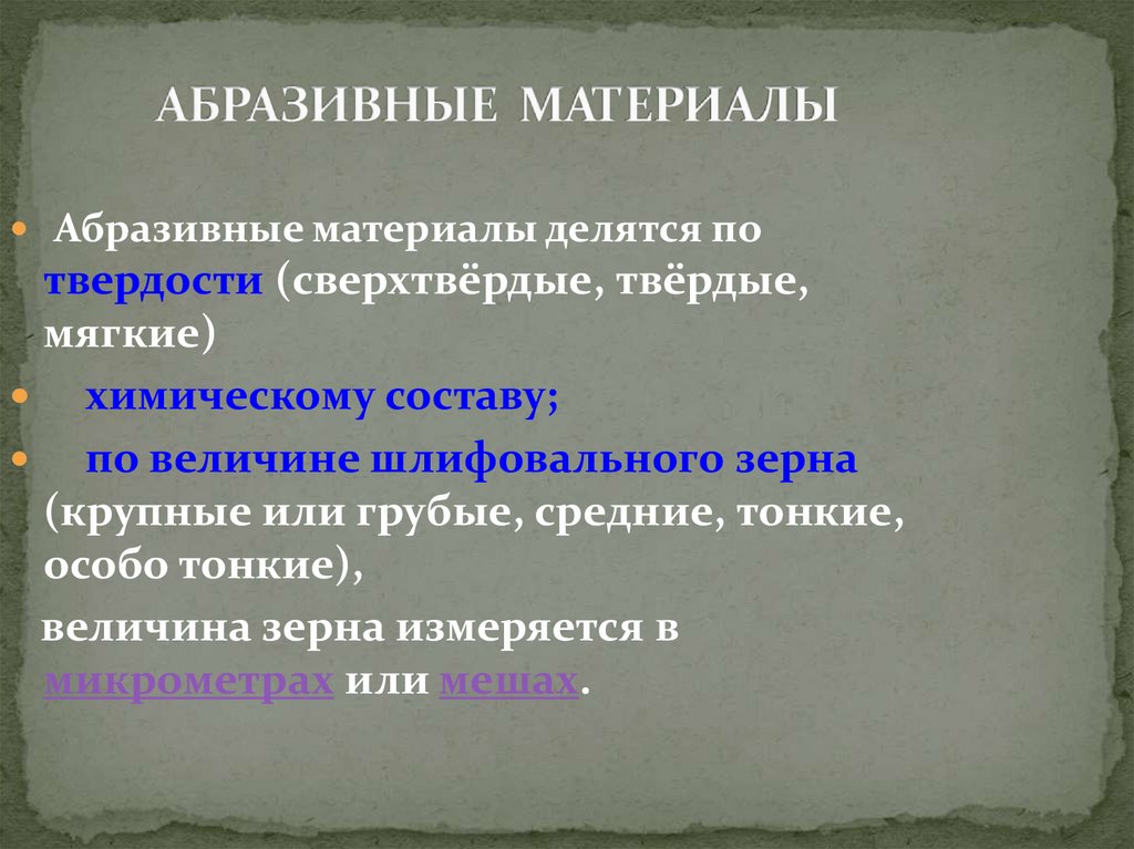 - размер и острота зерен или механическое оборудование