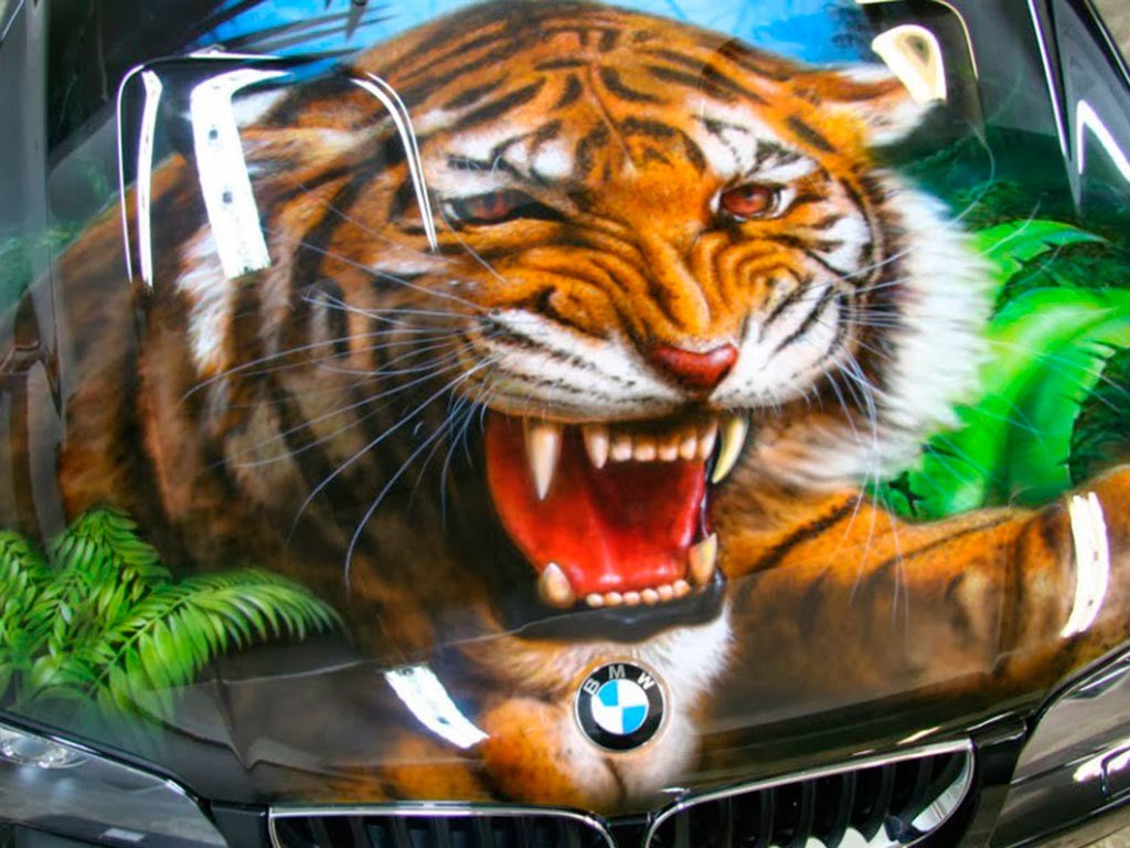 Аэрография на авто сделанная своими руками — это самый доступный метод тюнинга. Посредством нанесения рисунков на различные поверхности, возможно оживить и придать уникальность автомобилю. При этом используют порошкообразные и жидкие красители.