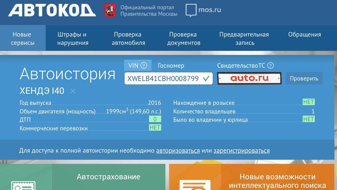 Автокод даёт полную информацию об авто только авторизованным пользователям.