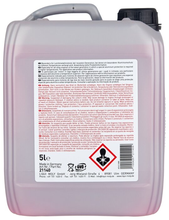 • Совместимость со всеми другими цветами антифризов и охлаждающих жидкостей