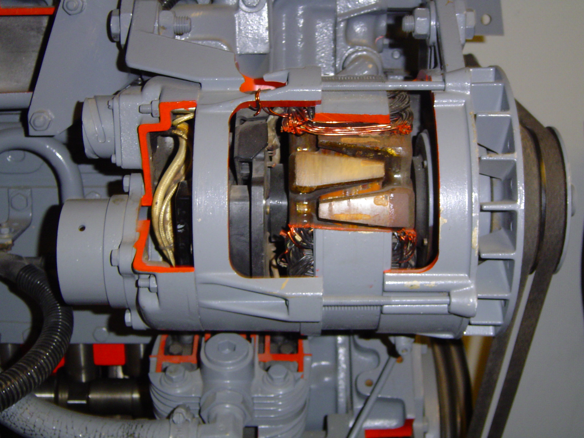 Генераторы размером примерно с кокосовый орех обычно находятся возле передней части двигателя.Они получают мощность от коленчатого вала, который преобразует движение поршней вверх и вниз в круговое движение.