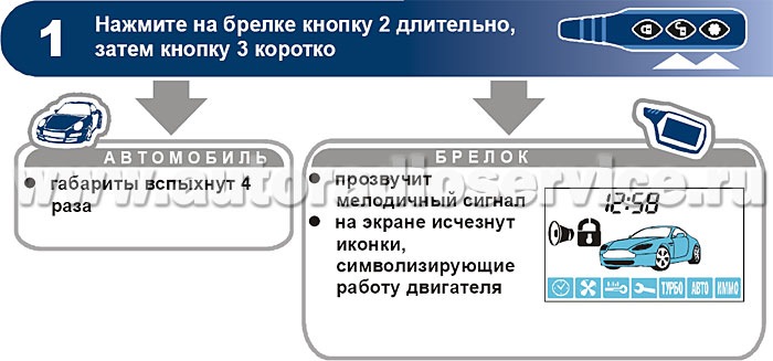 Если запуск прошел успешно, автомобиль моргает поворотниками, на брелок также поступает уведомление. Система фиксирует успешность запуска на основании сигнала с тахометра, по уровню напряжения в бортовой сети автомобиля, а также по показаниям давления масла.