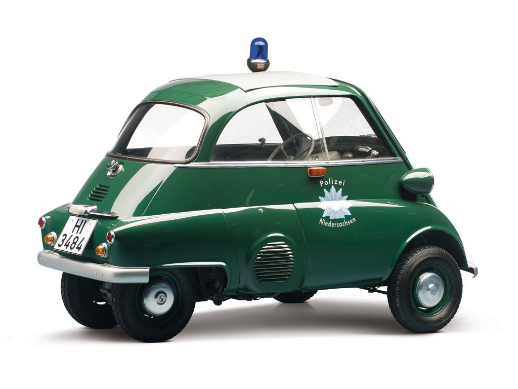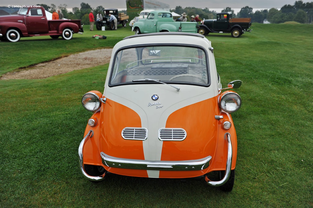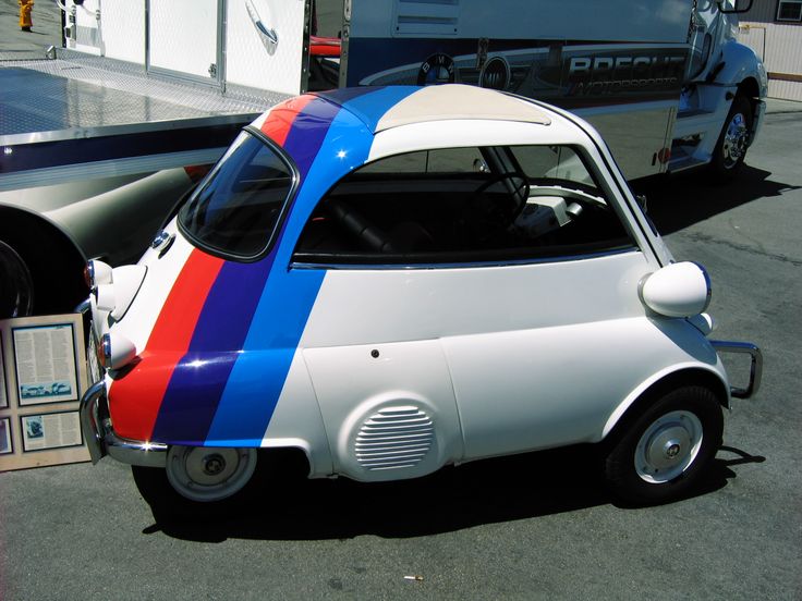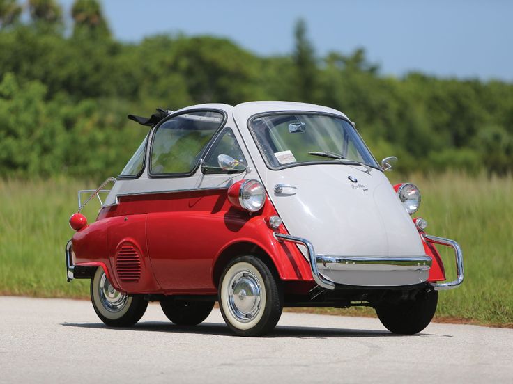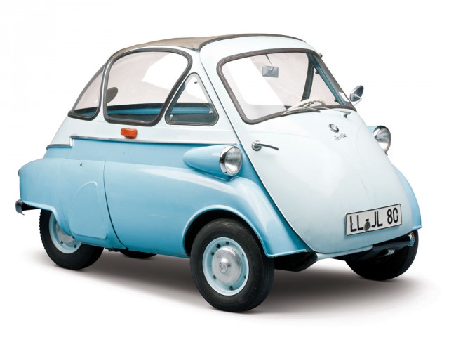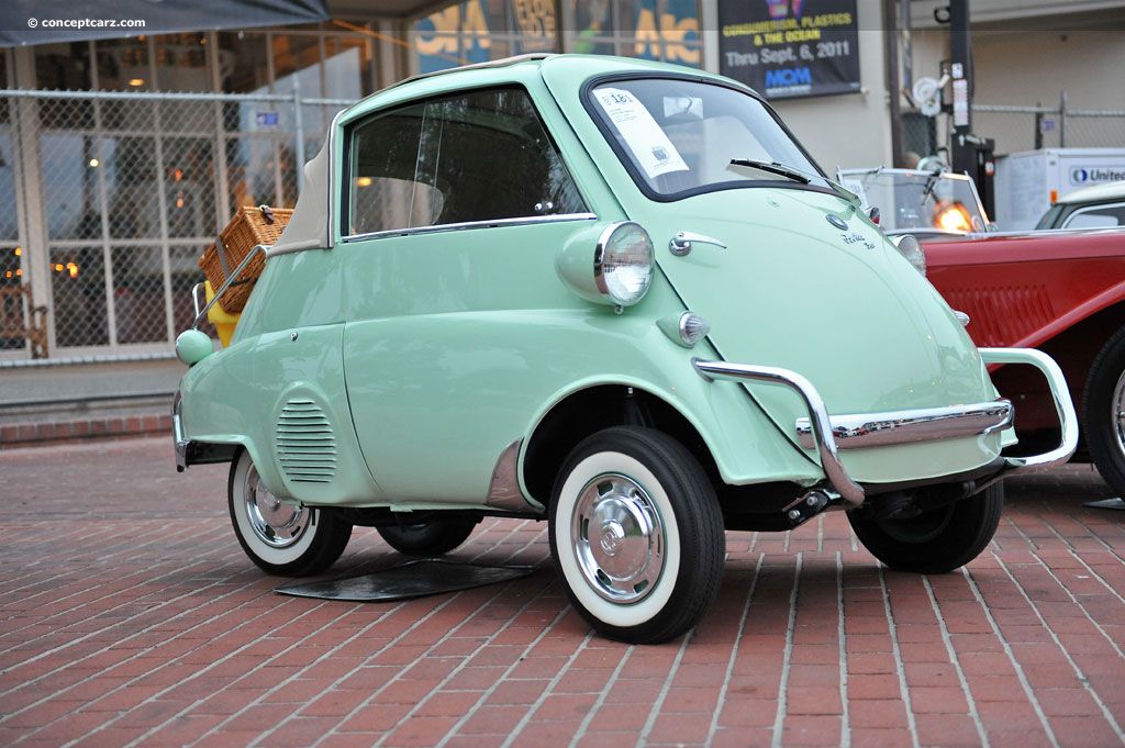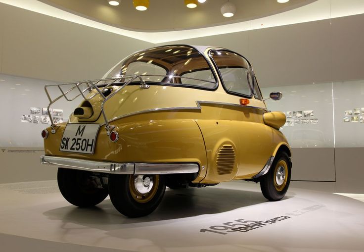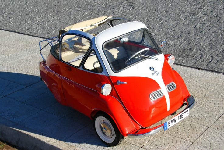 BMW Isetta, модель выпускалась с 1955 по 1962 гг. Впервые БМВ Isetta был представлен широкой общественности в 1953 году. Автомобиль собирался в Европе, имел яйцеобразный вид.