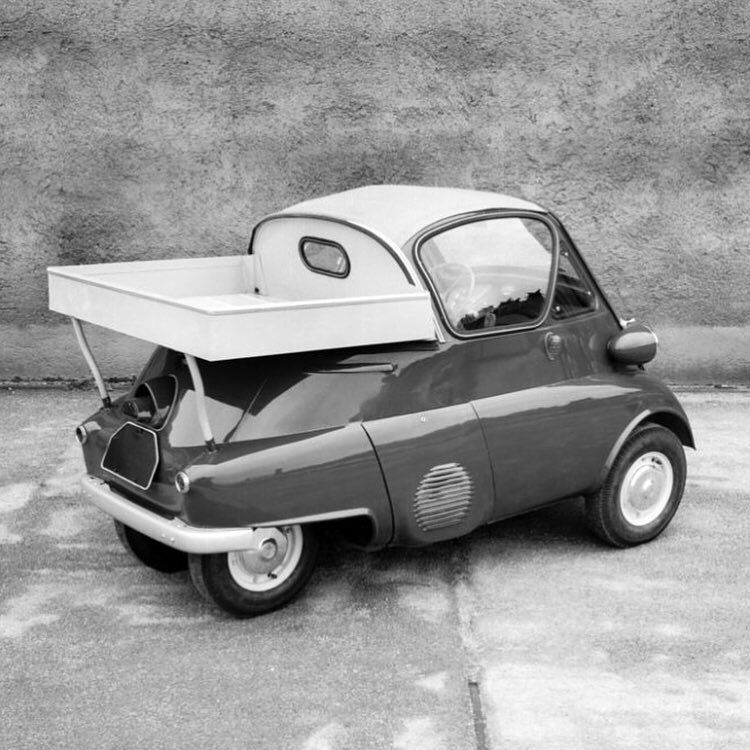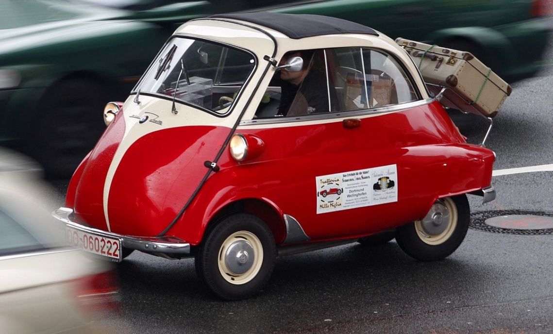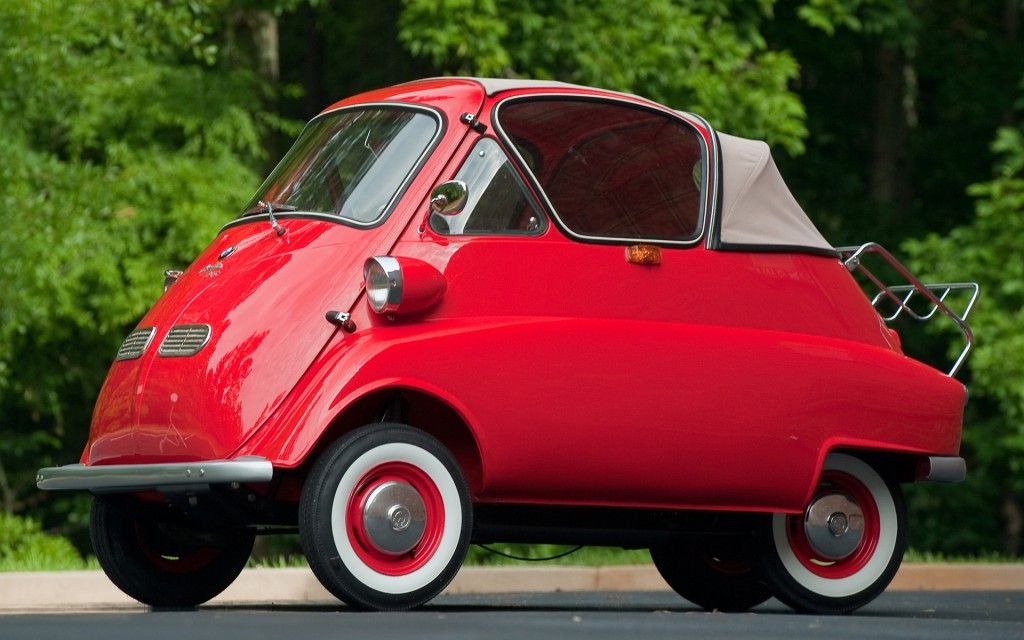Возможно, мотоциклетного типа тоже. На этот раз это что-то совершенно другое, этот одноместный автомобиль является классической BMW Isetta.