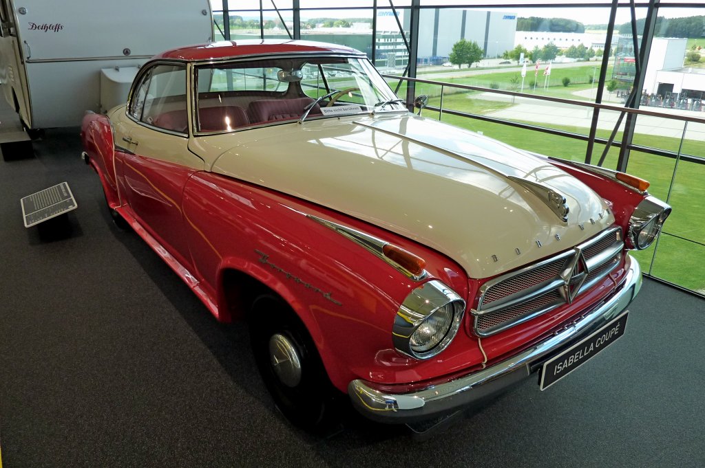 Купе Borgward Isabella выпускалось на предприятии в Бремене в 1957-1961 году. Автомобиль получил несущий кузов, независимую подвеску (с качающимися полуосями сзади) и мотор 1. 5 (75 л.с.) с четырёхступенчатой «механикой». В гамме также был и одноимённый кабриолет.