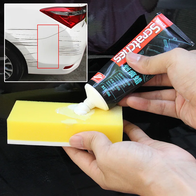 Способ подходит для светлых авто и неглубоких царапин. Если под рукой нет губки для посуды, возьмите щетку для чистки зубов. Нанесите на нее пасту и втирайте без усилий. Не жалейте пасты. Оставьте машину на 10-15 минут. Если результат вас не удовлетворил, повторите процедуру.