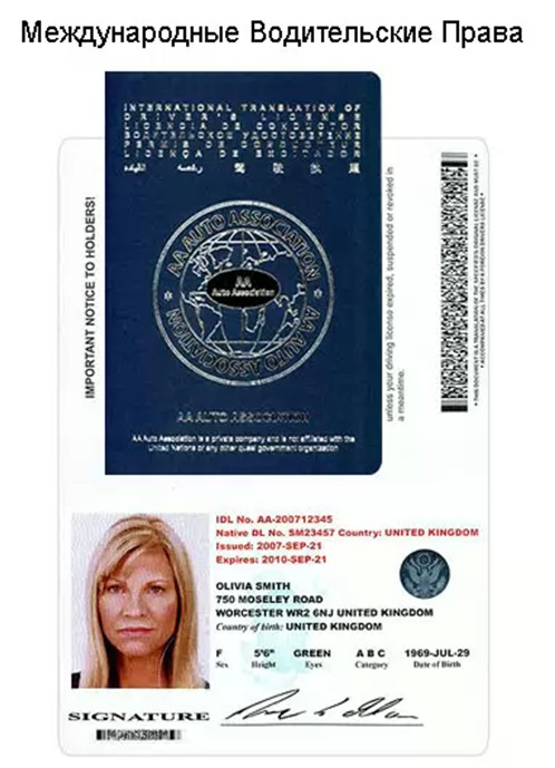 Образец международного водительского удостоверения