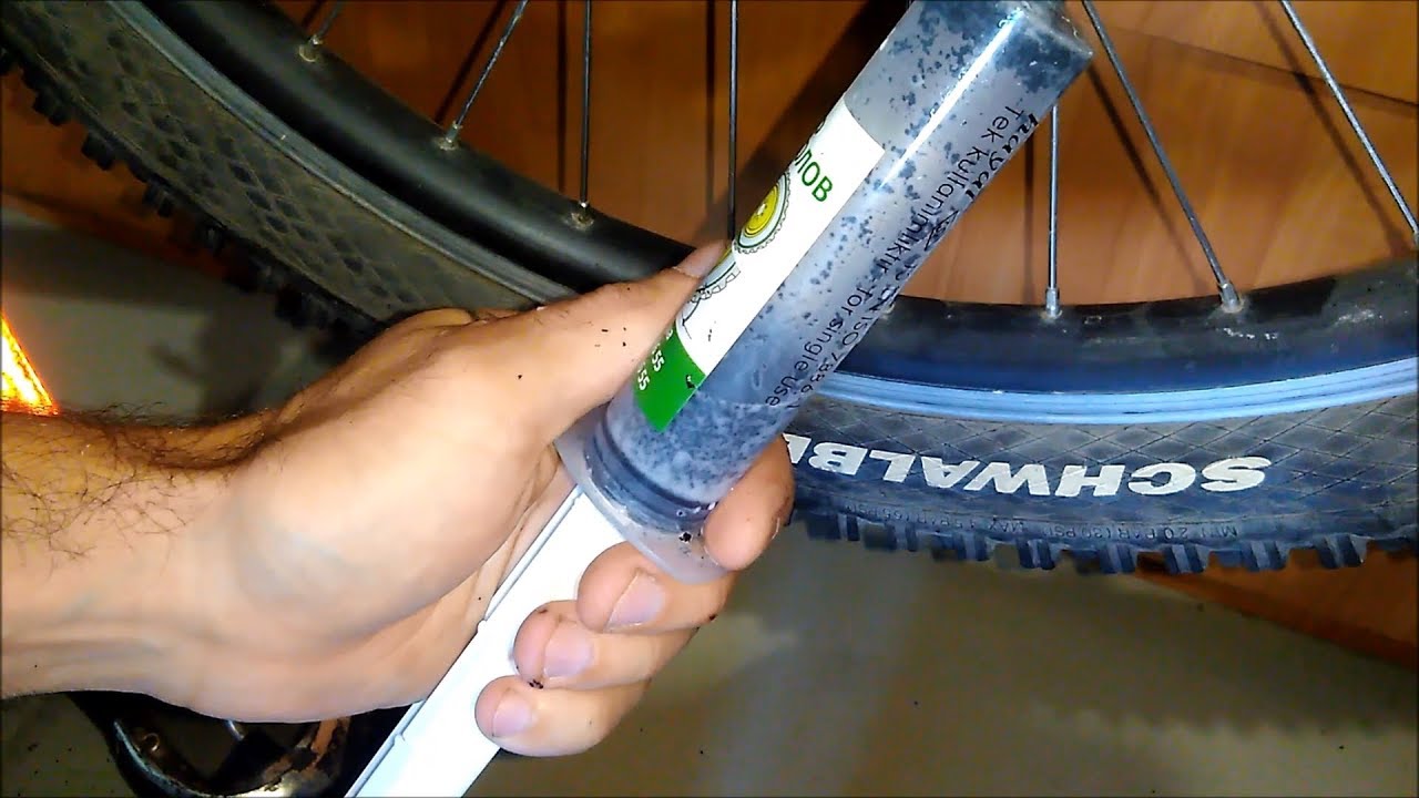 Не забывайте крутить колесо, а также поднять его в воздух, чтобы герметик покрыл всю поверхность шины и обода.