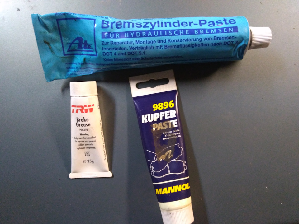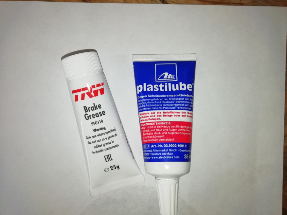У меня тоже встал вопрос о смазке направляющих заднего тормозного суппорта — подклинивали. Купил ремкомплект, в нем есть маленький пакетик со смазкой.