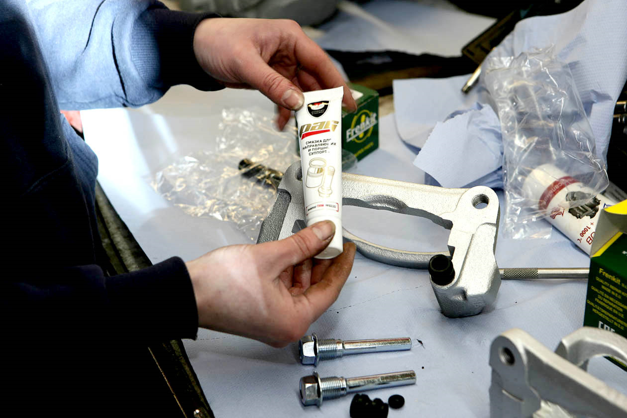 Слова старых механиков о том, что «каждой смазке свое место», могут показаться достаточно фривольными и пошлыми, но только до тех пор, пока водитель не столкнулся с проблемой: для смазки пальцев суппортов был использован неправильный ремкомплект, и деталь закусило. Далее сценарий может развиваться следующим образом – тормозная жидкость вскипела и на скорости тормоза отказали…