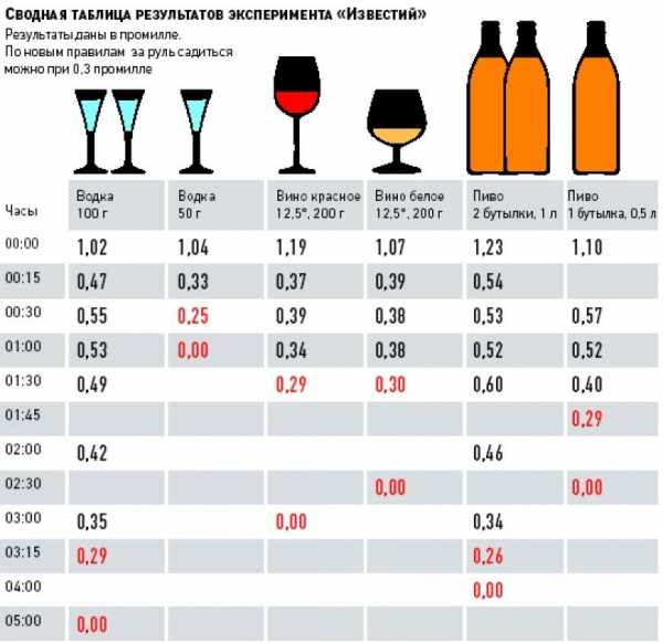Но для удобства читателей мы перевели все цифры в привычные промилле (сделать это несложно, ведь 1 промилле в крови соответствует примерно 0,45 мг/л в выдыхаемом воздухе).