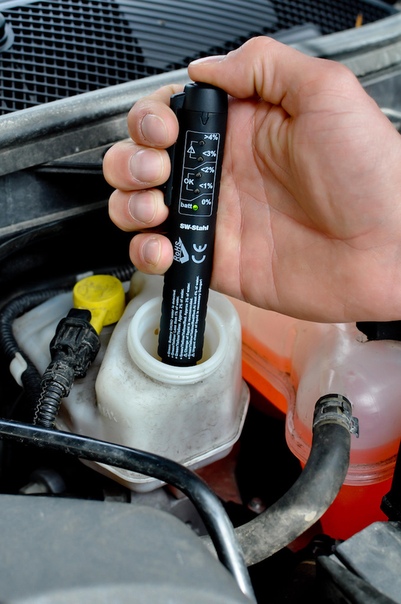 Помимо личного визуального контроля, в автосервисах могут провести проверку качества тормозной жидкости специальным тестером. Такой тестер определяет процент содержания воды в жидкости. Если это значение окажется критичным, то тестер покажет на табло необходимость замены тормозной жидкости.