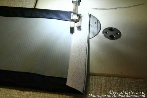 Настрочить липучку «папу»с лицевой стороны. На другом конце чехла «маму» настрочить на изнанку, отвернуть на лицо.