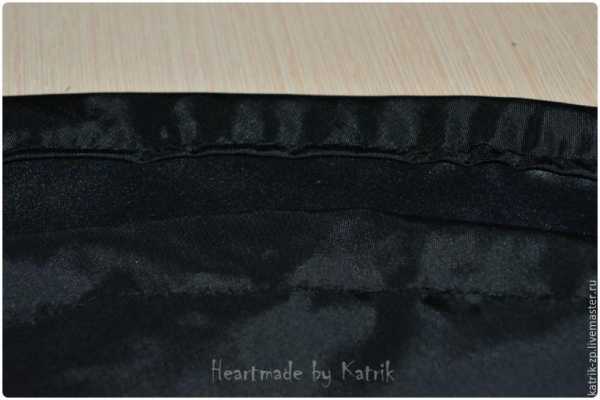 Если края ткани осыпаются, их следует предварительно обработать на оверлоке или обметать вручную. Затем прямоугольники сгибают пополам и пришивают к кругам. Чтобы это было легче сделать, круги лучше предварительно присборить, чтобы длина окружности стала равна длине прямоугольной полосы.