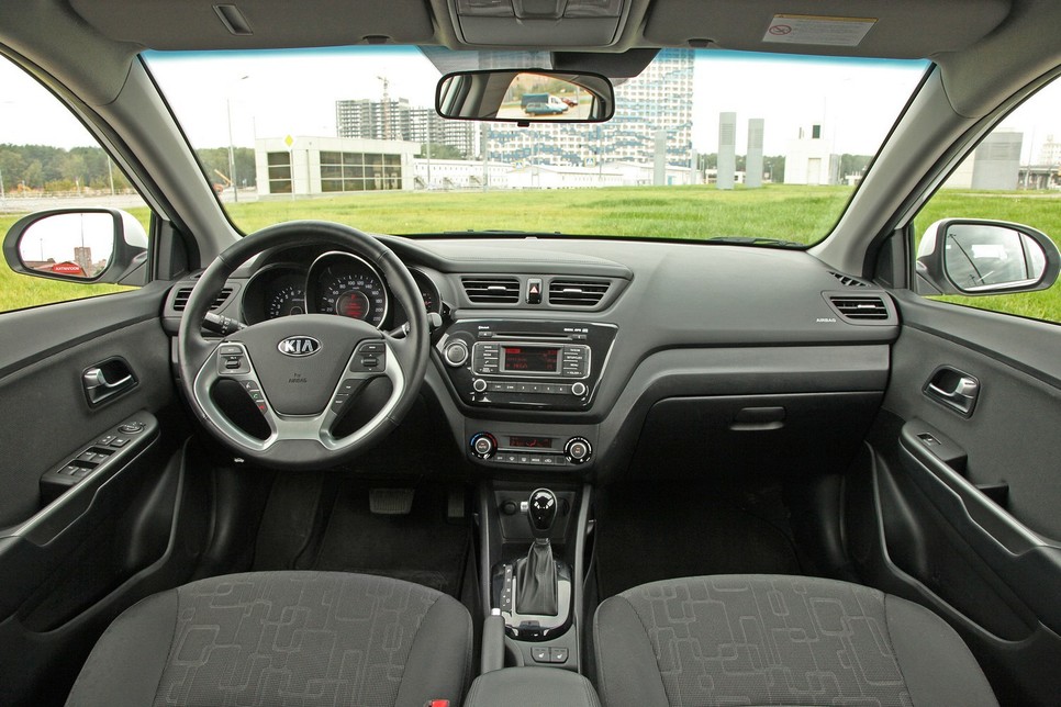 На первый взгляд внутреннее оснащение Рио отличается от Соляриса только цветом. Затем беглый взгляд замечает различия — измененная конфигурация центральной консоли, другой дизайн передней панели и форма дефлекторов. Эргономика у корейской пары обычная. Узнаваемые устройства, такие же кнопки, как у брата, руль и сиденья такого же профиля.