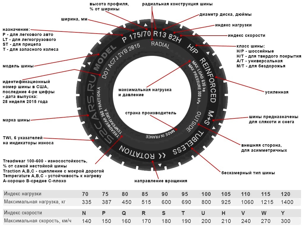 Что означает дополнительная маркировка и буквы на боковинах шин автомобиля