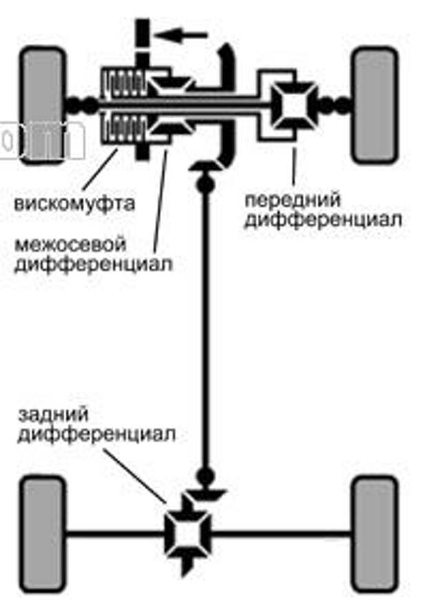 Существует жесткая полная блокировка, дифференциалы с ограниченным проскальзыванием, с симметричным или асимметричным распределение тягового усилия. Вискомуфта относится ко второй и третьей подгруппе одновременно, поскольку в равных режима езды может наблюдаться проскальзывание дисков. Вполне естественно, что тогда тяговое усилие будет асимметрично распределяться между осями. Когда же наиболее сложные условия, будет происходить стопроцентная блокировка по причине полного затвердевания жидкости. Что же касается конструкций блокировки межосевого вала, то они могут быть следующими: