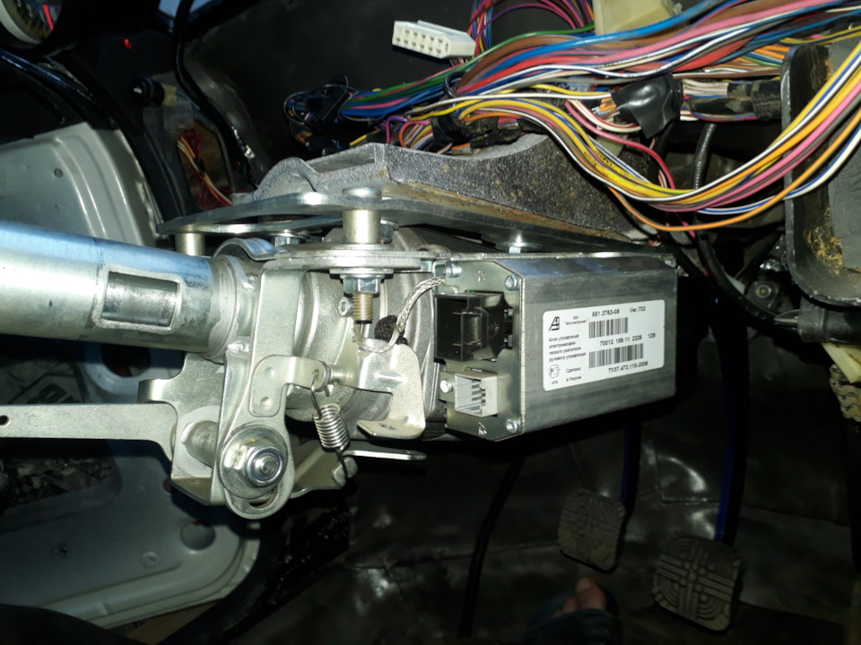 при монтаже ЭУР никаких сложностей не должно возникнуть. Только отключите массу в авто. Весь процесс установки будет самом салоне. Проведите замену карданного вала в рулевой колонке и сделайте нужные отверстия. После выполнения этого останется соединить кабель электропитания с предохранителем, а также провода датчика числа оборотов коленчатого вала двигателя и датчика скорости. Используйте кожух, который идет в комплекте.
