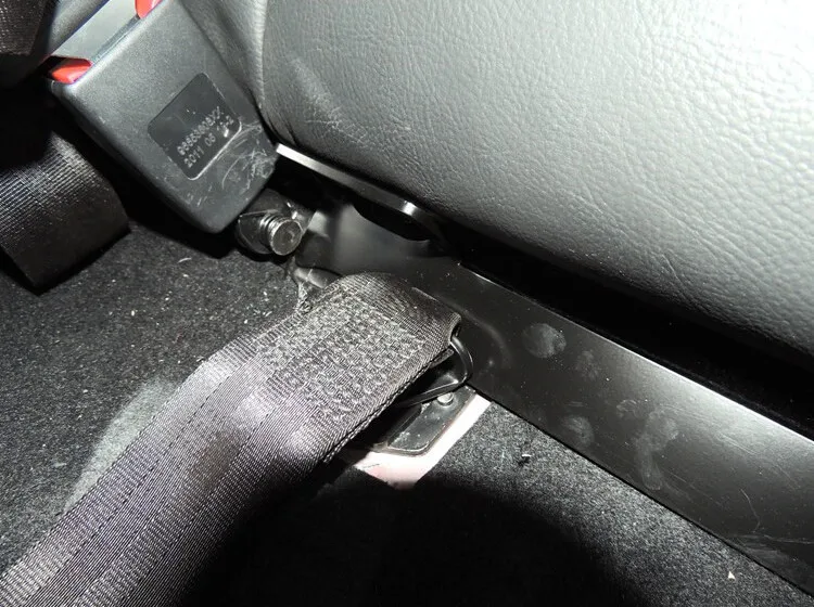 2. Просто проведите рукой в соединении спинки и сиденья заднего дивана автомобиля, и вы наткнетесь на искомые скобы. В некоторых автомобилях для доступа к скобам, нужно снять декоративные элементы с кресла.