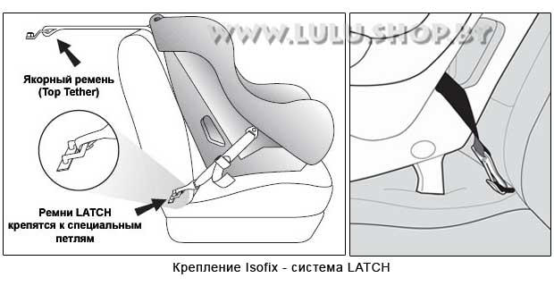 Система крепления LATCH (Lower Anchors and Tethers for Children) это вариант крепления детского автокресла с использованием двух нижних точек и одной верхней (Top Tether, он же якорь).