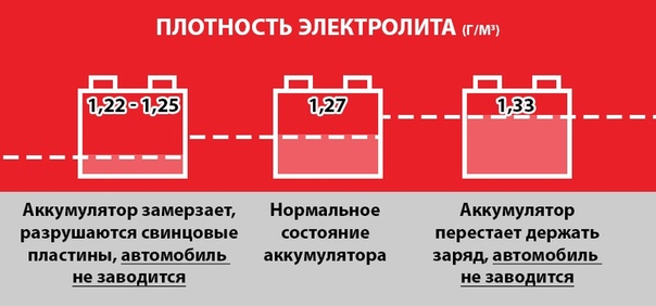 Оптимальная плотность электролита в аккумуляторе зимой и летом