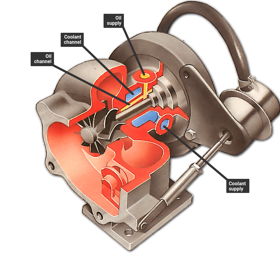 Ведущими частями любого турбокомпрессора являются турбина и насос, которые соединены между собой жесткой осью. Турбина двигателя с изменяемой геометрией необходима для образования оптимальной мощности двигателя, имеет свойство изменять сечение турбинных колес в зависимости от общей нагрузки. Если двигатель работает на низких оборотах, то турбина может увеличить скорость отвода выхлопных газов. Это позволяет турбине вращаться быстрее, при этом количество топлива остается небольшим.