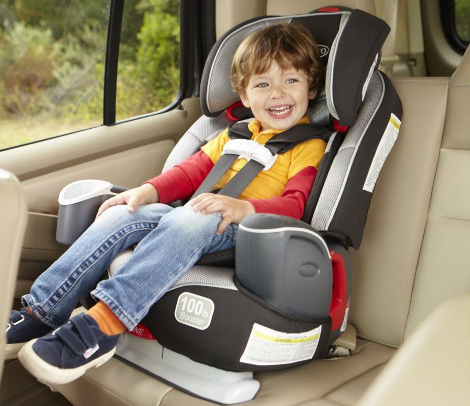 - Детские сиденья с фиксацией ремня безопасности: Когда ваш ребенок перерастет трансформируемое сиденье, вы можете использовать дополнительное сиденье с фиксацией ремня. Используйте обычные автомобильные набивные и плечевые ремни, чтобы обезопасить ребенка, когда он сидит на бустере. Бустеры без спинки хороши, если автомобильное сиденье поддерживает голову.