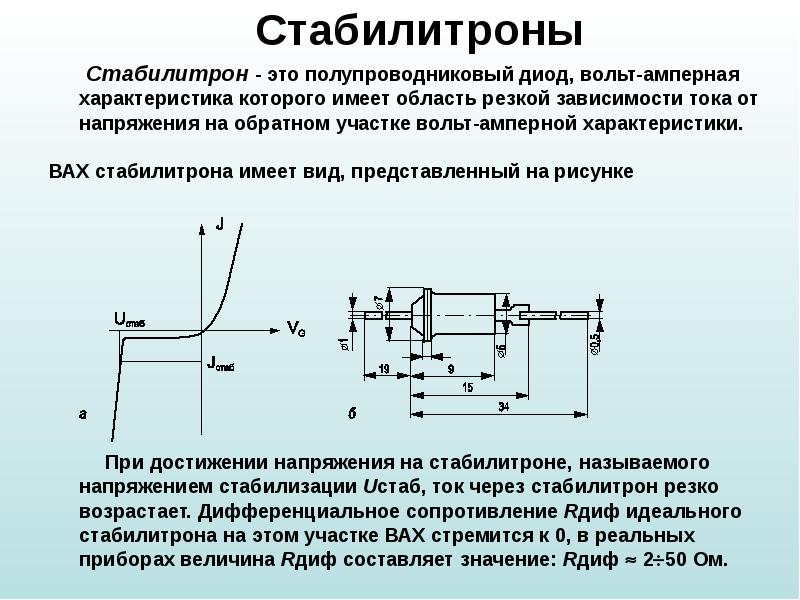 - Стабилитроны используются в коммутационных операциях Стабилитроны