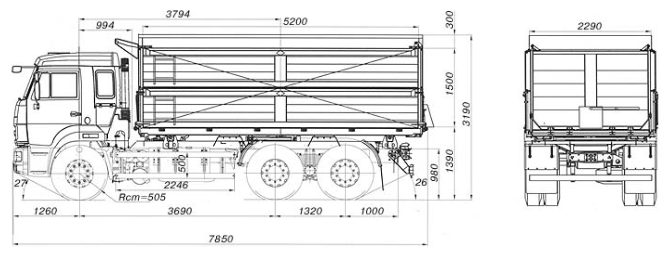 Технические параметры, Габаритные размеры. Отзывы владельцев Габаритные размеры автомобиля КАМАЗ 65115