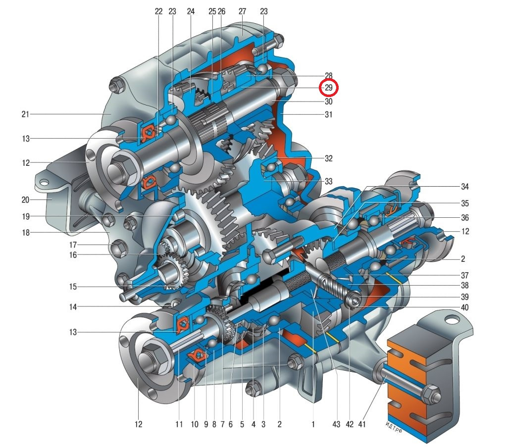 Устройство раздаточной коробки и назначение ее деталей