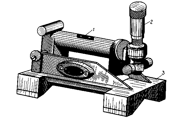 Рис.33.Уровень с призменным основанием: 1-цилиндрический уровень; 2-винт микрометра; 3-основание.