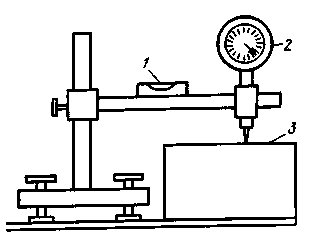 1 — винт микрометра; 2 — основание; 3 — цилиндрический уровень