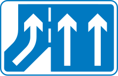 Начало дополнительной полосы на подъеме или полосы торможения. Если на знаке, установленном перед дополнительной полосой, изображен знак 4.6 , то водитель транспортного средства, который не может продолжать движения по основной полосе с указанной или большей скоростью, должен перестроиться на полосу, расположенную справа от него. |