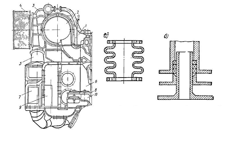 Для обеспечения равномерности подачи воды в нагнетательную магистраль и уменьшения ударов воды в начале нагнетательного хода поршня установлен буферный воздушный колпак. Давление в системе охлаждения регулируется редукционным клапаном путем соответствующего натяжения пружины.
