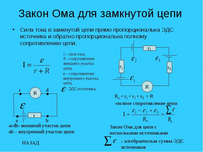 Соответственно, ЭДС, действующая на участке цепи определяется как:. Участок цепи, на котором действуют сторонние силы, называют неоднородным. Для него выполняется равенство:. Следует учитывать, что ЭДС может быть положительной и отрицательной. ЭДС называют положительной, если она увеличивает потенциал в направлении тока ток течет от минуса к плюсу источника.