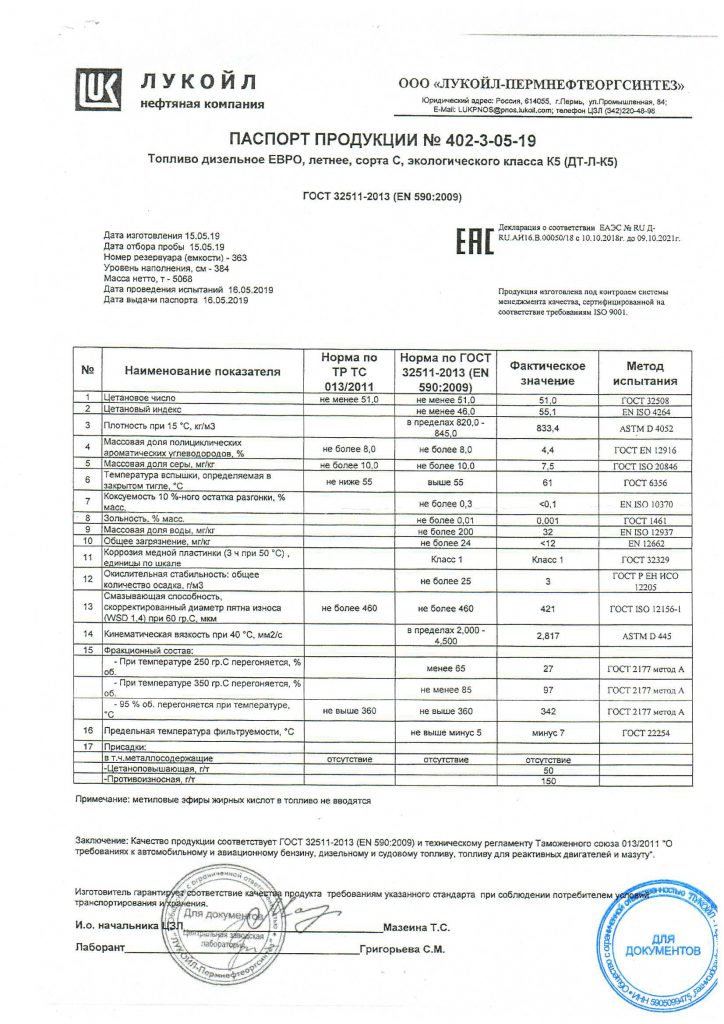 По требованию потребителя продавец обязан предъявить копию документа о качестве (паспорт) топлива.
