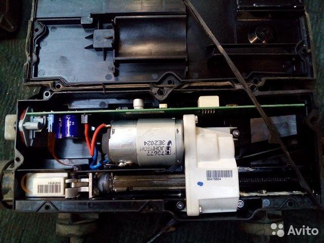 Электродвигатель, шпиндель, спиральная пружина, балансир, отклоняющие шкивы троса, пластмассовые зубчатые колеса и тросы.