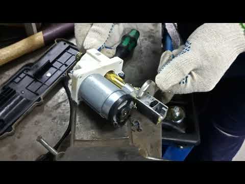 Привод: 1 Электродвигатель, 2 Пластиковые зубчатые колеса, 3 Пружина, 4 Шпиндель, 5 Балансир, 6 Отклоняющий ролик троса, 7 Тросы Оба автомобиля имеют аварийное растормаживание, позволяющее водителю или мастерской разблокировать тормоз в случае отказа системы.