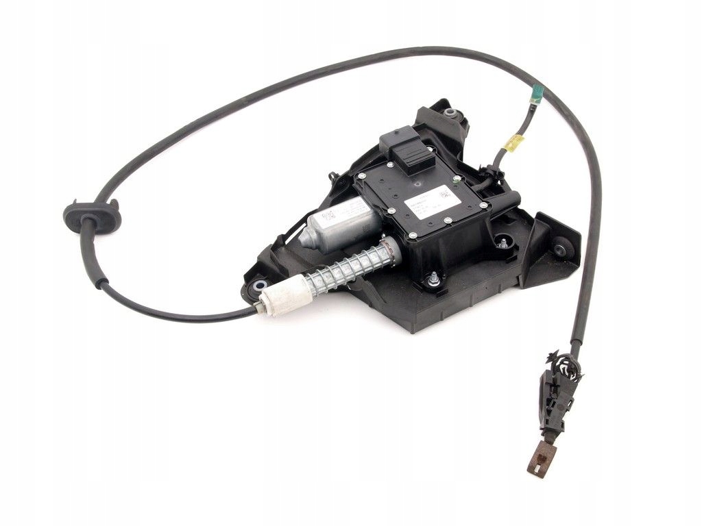 При включении стояночного тормоза электродвигатель приводит в движение шпиндель через пластиковые зубчатые колеса. В результате резьбы на шпинделе балансир, который используется для компенсации влево/вправо, перемещается вперед и назад на шпинделе в зависимости от того, нужно ли наложить или отпустить тормоз. Шкивы крепятся к балансиру соединительными рычагами. Тросы для левой и правой сторон установлены в шкивах. При включении стояночного тормоза балансир перемещается по шпинделю, а шкивы вращаются внутрь и приводят в действие тросы, которые затем приводят в действие барабанный тормоз с двойным сервоприводом.