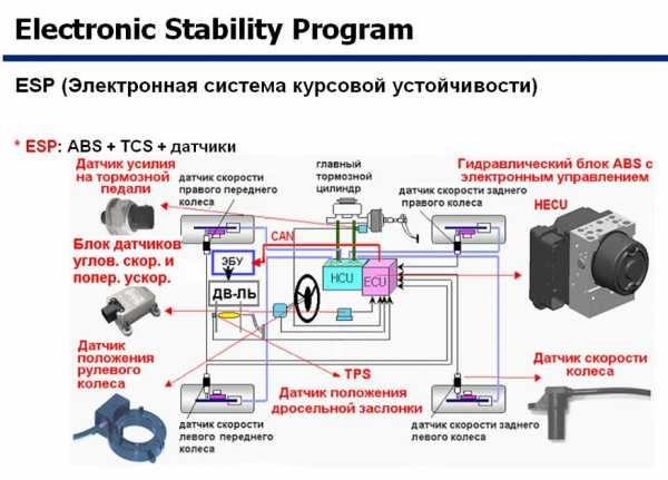Схема блока управления у системы, предназначенной для курсовой автомобильной устойчивости. Итак, система, разработанная для стабилизации, структурно выглядит таким образом: