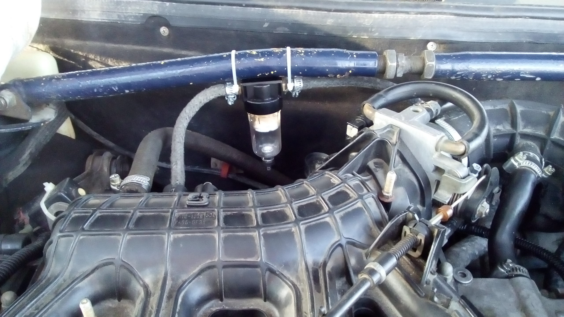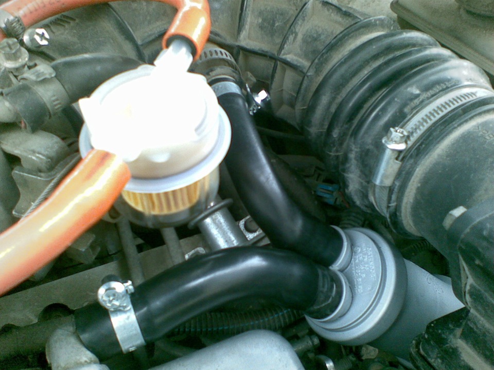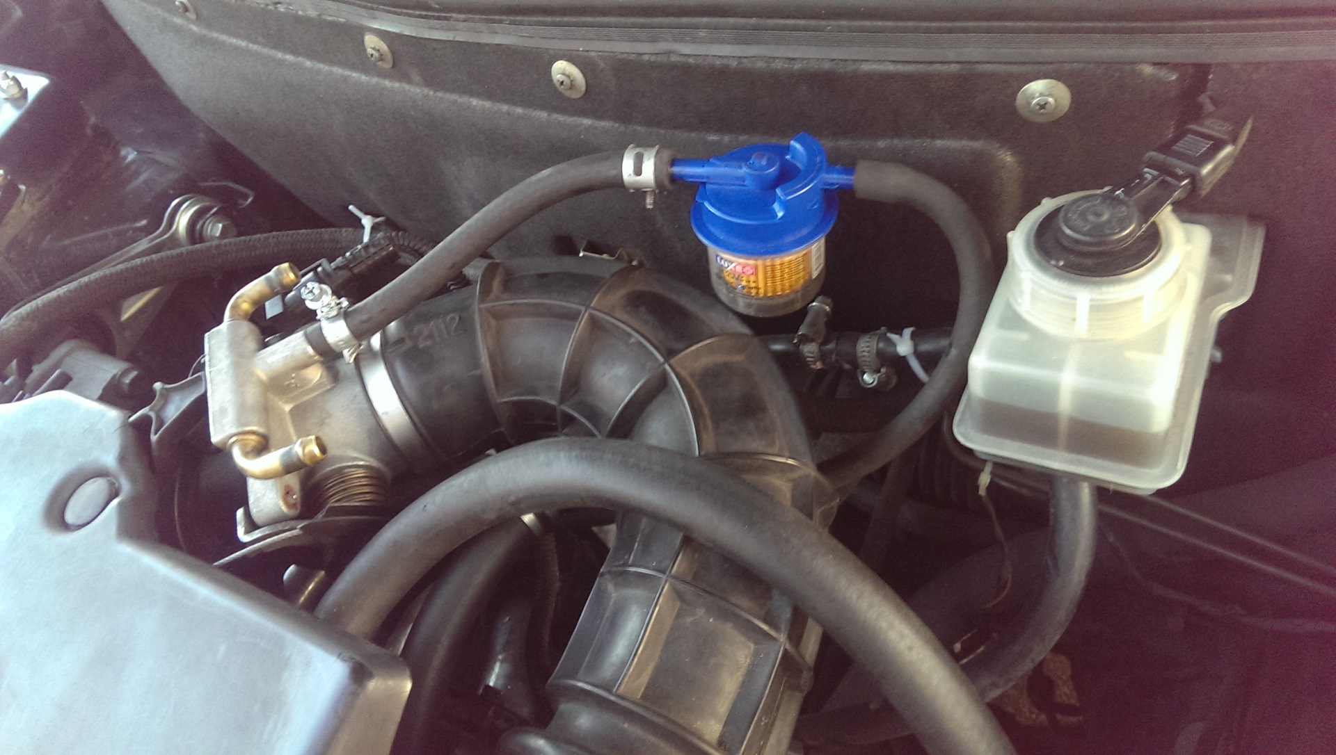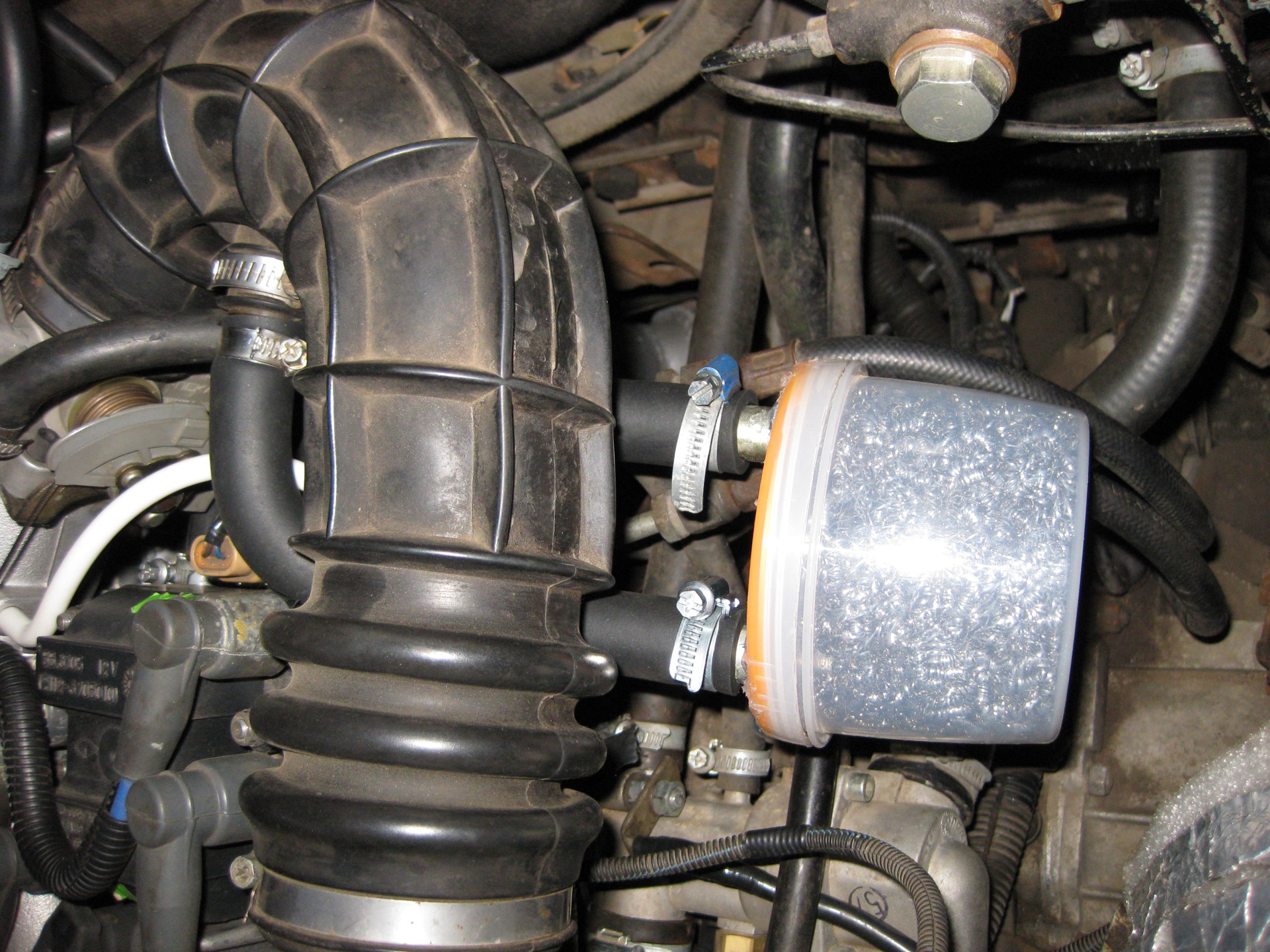Простое отсоединение патрубка не выход из ситуации, поэтому к патрубку присоединяют фильтр. Отверстие для входа в дроссельный узел также следует заглушить, чтобы грязь не попадала во впускной коллектор и камеру сгорания. - Установление фильтрующего элемента между картером и дроссельным узлом вразрез патрубка. Этот вариант предпочтителен, так как решается вопрос фильтрации картерных газов, предотвращения доступа воздуха из внешней среды в картер и дроссельный узел. В то же время частично пары масла в минимальных объемах поступают для смазки узлов во входном коллекторе (дросселе).