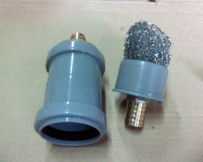 - В заглушке делаем отверстие для пластикового патрубка или штуцера. Закрепляем его на заглушке и герметизируем. Это будет выходной патрубок фильтра.