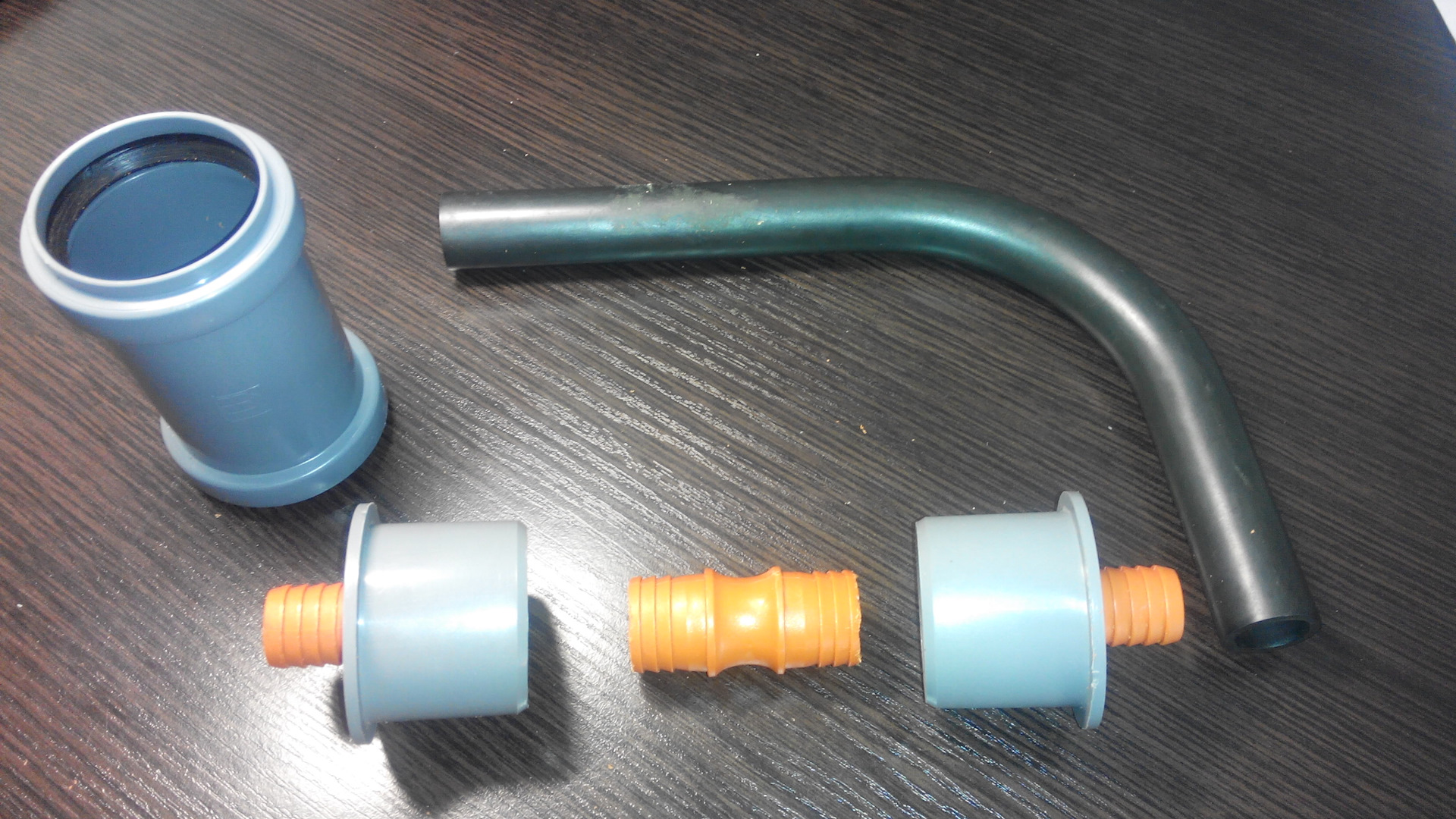 - два пластиковых патрубка для соединения со шлангом. Размер должен соответствовать внутреннему диаметру шланга. Можно использовать пластиковые или металлические штуцеры с резьбой.