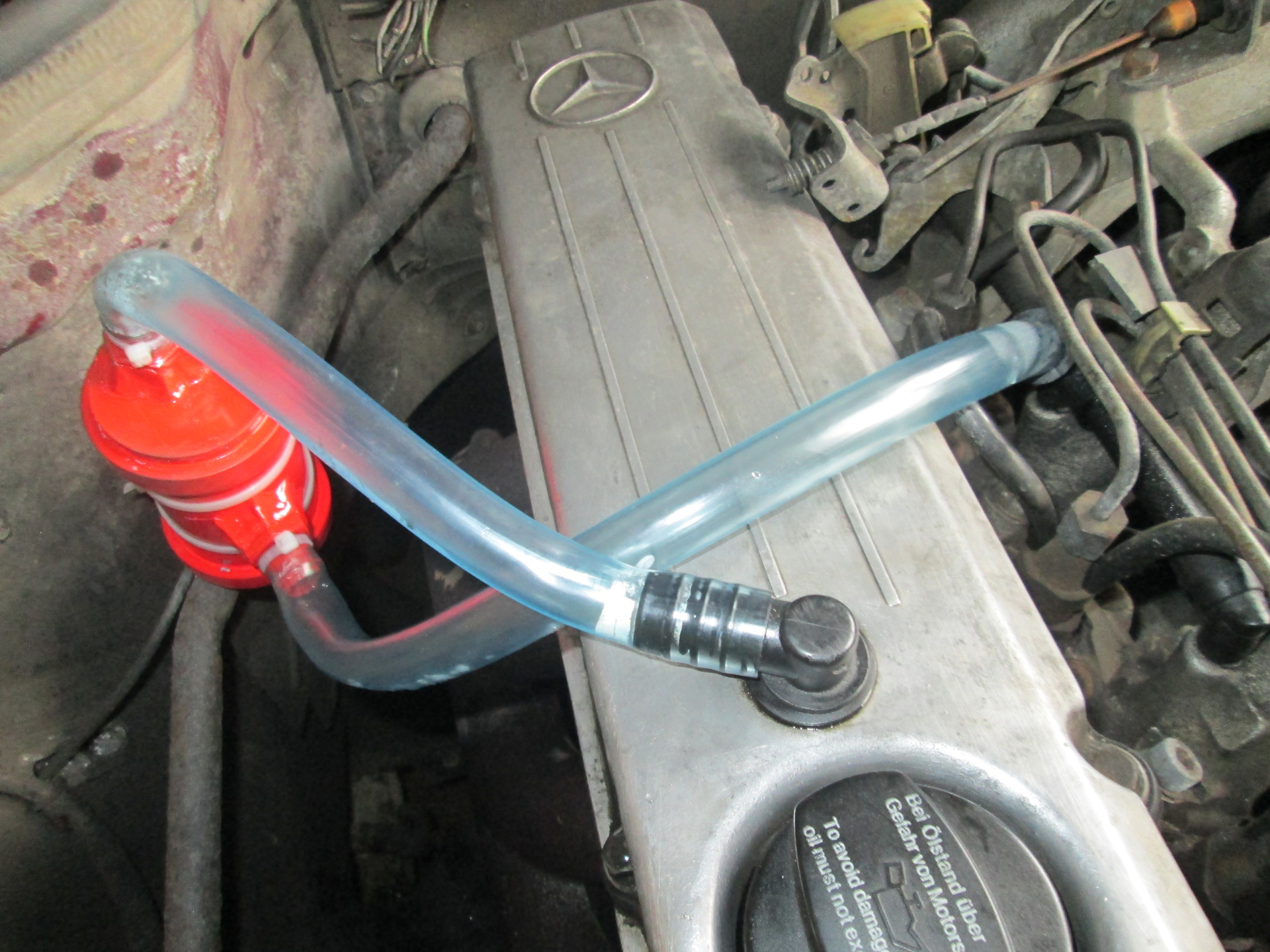 При установке сапун картера двигателя подсоединяется к впускному отверстию узла CCV.Выпуск CCV соединен с впуском воздуха для горения двигателя через соединитель воздухозаборника, где отфильтрованный картерный газ рециркулирует в процессе сгорания. Масло, собранное в поддоне CCV, возвращается в картер через шланг и сливной обратный клапан.
