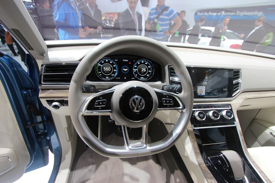 В нашем новом Фольксвагене так много технологий, что мне трудно все это освоить. Думаю, пройдет несколько месяцев, прежде чем я ко всему привыкну. На приборной панели установлен огромный 15-дюймовый сенсорный экран, который сливается с цифровой комбинацией приборов за рулевым колесом.