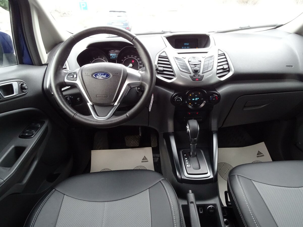 Рабочую панель водителя Форд Экоспорт венчают рельефные козырьки «приборки», в зависимости от модификации с механическим или виртуальным блоком. Рулевое колесо помимо классических опций, обладает кнопками для контроля климатической обстановки в салоне, тем самым дублируя климатический пульт, размещенный на центральной консоли.